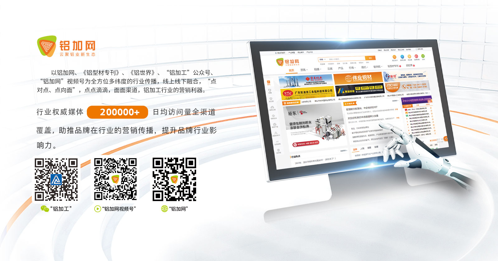 鋁加網(www.albiz.cn)是聞名鋁加工行業的垂直門戶網站,云聚鋁業新生態(tài),構建鋁業新場景,以albiz.cn 網站為核心,以移動云端、鋁加工微信、鋁加網視頻號、《鋁型材專刊》和《鋁世界》雜志為載體,成為了鋁加工行業資訊和精準傳播的首選傳媒。鋁加網,采集和發(fā)布全行業信息資訊,提供線上展覽、在線直播、短視頻、品牌策劃、品牌運營、品牌傳播等全方位的專業服務。